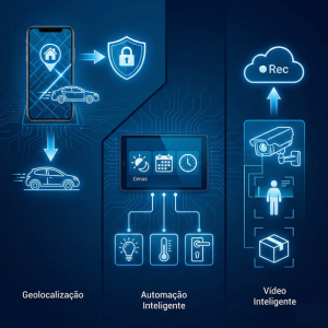 Geolocalização: O sistema ativa ou desativa o alarme automaticamente com base na sua distância física da residência ou empresa.